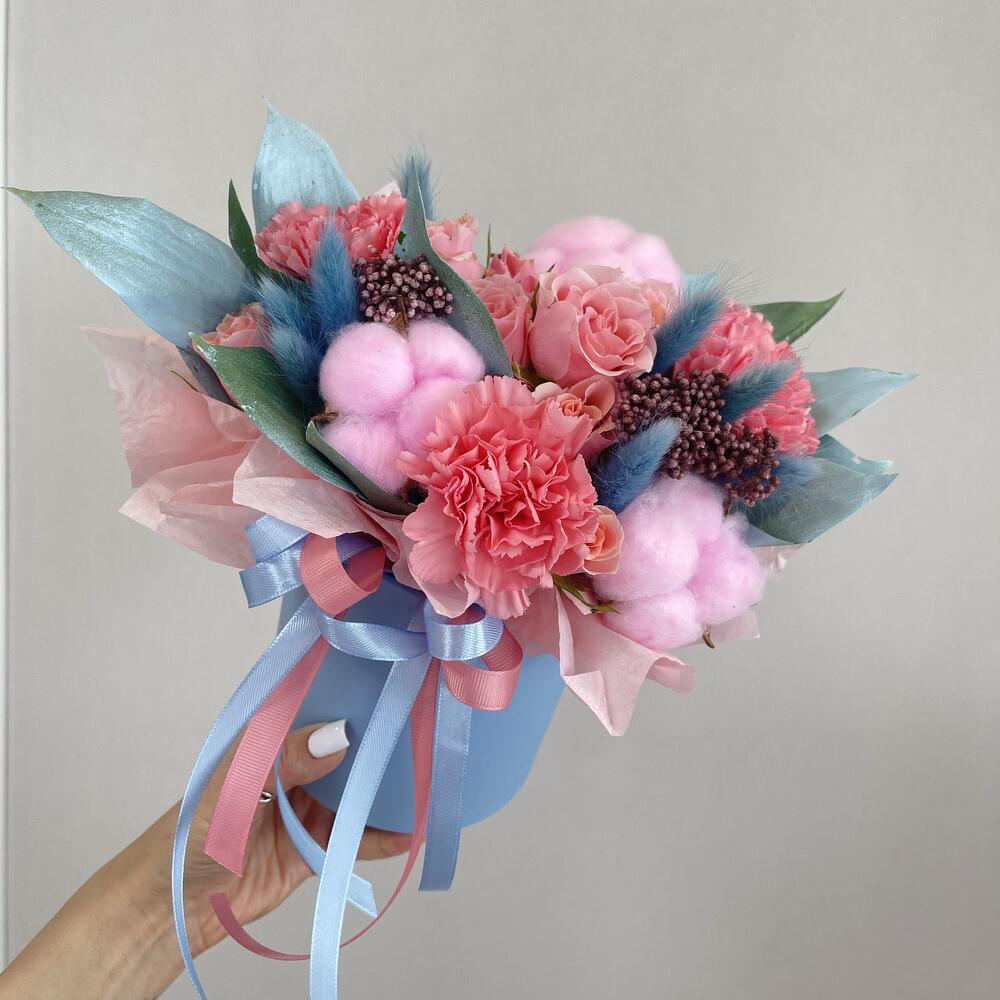 ДИАНТУС РОЗОВЫЙ И ХЛОПОК РОЗОВЫЙ В ШЛЯПНОЙ КОРОБКЕ в Камешково